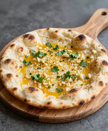 Finish: Sobald beide Seiten gebacken sind, sofort mit der geschmolzenen Knoblauch-Koriander-Butter bestreichen. Das ist das Geheimnis für den vollen Geschmack!